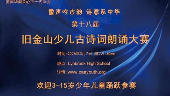 2026(第 18 屆)舊金山少兒古詩詞朗誦大賽即將舉行