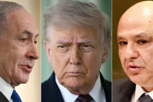 美国总统特朗普在与以色列总理内坦亚胡和黎